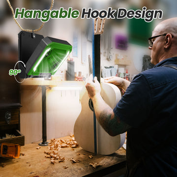 A unique air freshner slot located at the front of the fan. Just simply insert a scent pad into the container and add your favorite essential oil for a fresher breeze. This cordless fan can be 90° fold to stand as table fan, but also its rotatable hook, makes it easy for improving air flow inside camper tent, van, rv or small room at circulating air.